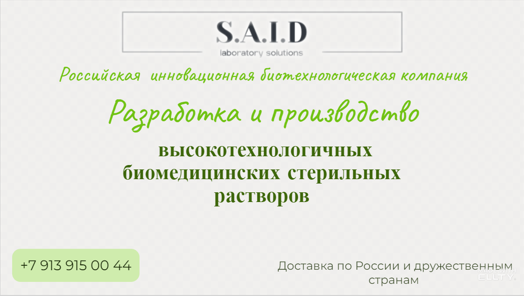 Представленные стерильные биологические растворы компании "S.A.I.D - laboratory solutions" — это продукция, аналогов соответствующего качества которой не существует на мировом рынке.